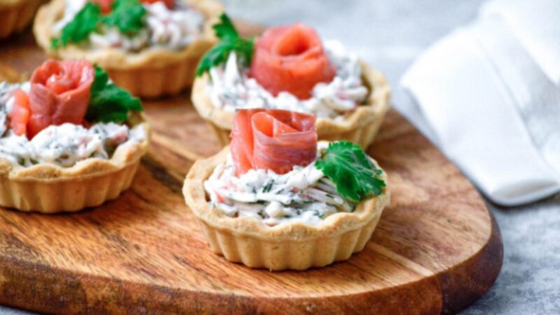 Быстрая закуска к новогоднему столу: тарталетки с творожным сыром и красной рыбой