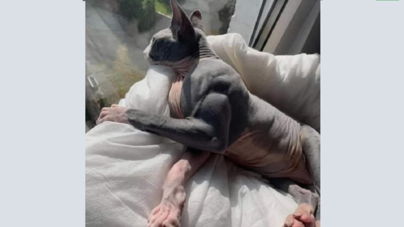 По словам автора поста, кошка страдает гипертрофией мышц, связанной с миостатином, — белком, подавляющим рост мышечных клеток. Это редкое заболевание, из-за которого у животного начинает увеличиваться мышечная масса.