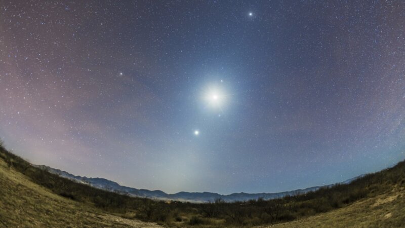 Утром в субботу, 26 февраля, Венера появится яркой точкой прямо над Красной планетой перед восходом солнца, а естественный спутник Земли окажется чуть правее. Астрономическое шоу завершится в воскресенье, когда убывающая Луна расположится примерно на 3,5º ниже Марса, который, в свою очередь, будет на 4º ниже Венеры.