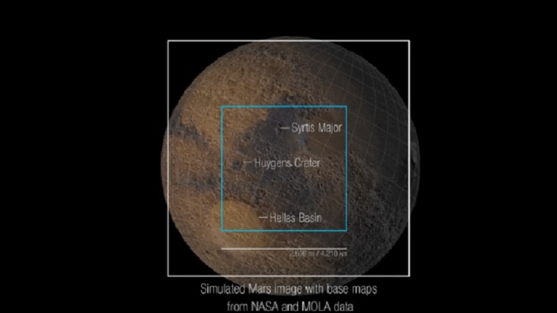 По словам ученых, полученная информация была необходима в рамках спектрографического исследования, а не картографирования. На снимке можно увидеть  восточное полушарие планеты, на котором располагается самая глубокая низменность – кратер Гюйгенс и плато Большой Сирт.