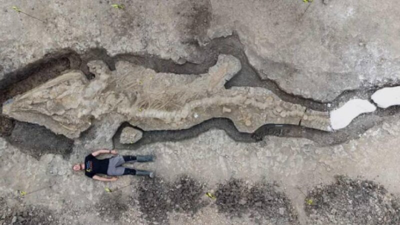 По словам ученых, длина скелета морской ящерицы составляет около 10 метров, а ее череп весит целую тонну. Палеонтологи назвали свою находку одной из величайших в истории, сообщает BBC.