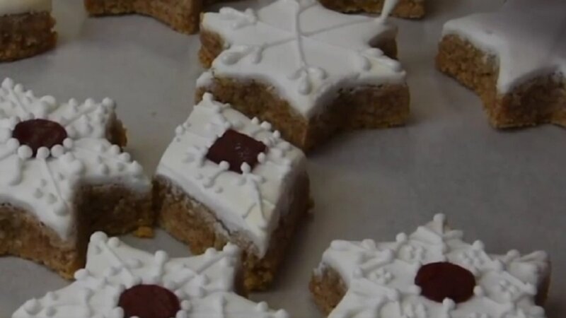 Для печенья использовать формы в виде звезд, елок, снежинок и других рождественских символов. Выпекать при температуре 160°С с режимом вентиляции, пока края печенья не будут с легкостью отходить от силиконового коврика.