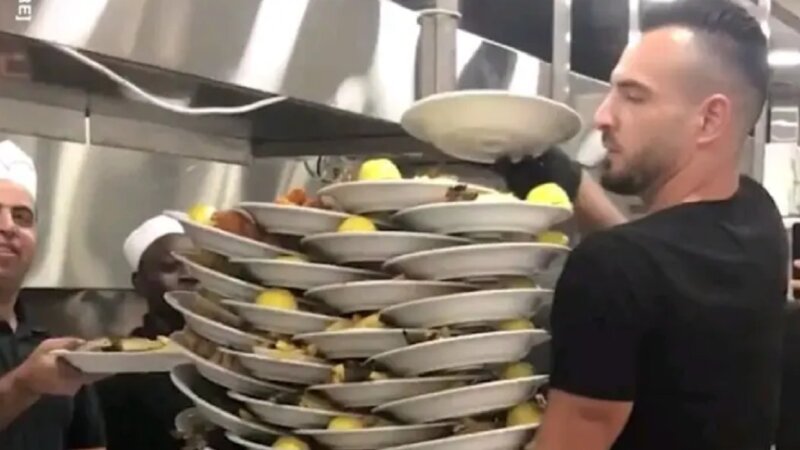 Австралийский официант Мохаммед Зидат удивил пользователей соцсетей, взяв в руки сразу 33 тарелки с едой. По словам мужчины, так работать гораздо удобнее, чем все время возвращаться за блюдами на кухню.