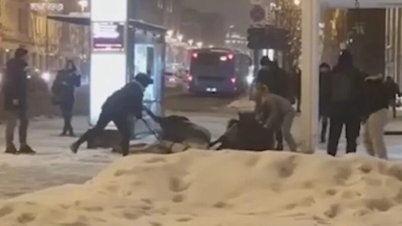 В центре Москвы лошадь убило током во время прогулки. Инцидент попал на видео, которое опубликовал Telegram-канал «Что там в Москве?».