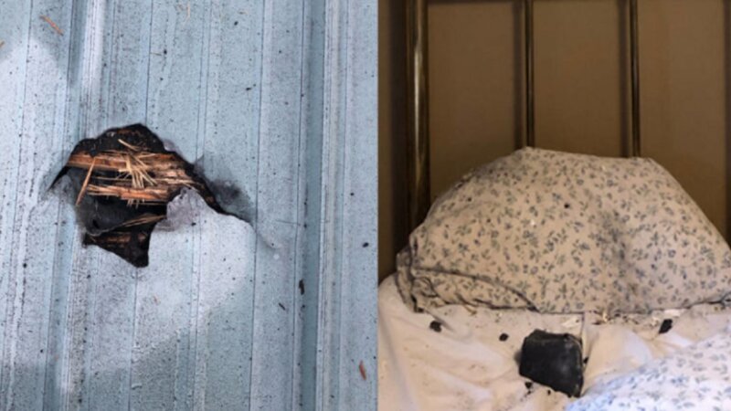 Как сообщает издание Castlegar News, Рут Гамильтон спала у себя дома, когда ее внезапно разбудил звук удара. На женщину посыпались обломки. «Я подскочила и включила свет. Я не могла понять, что произошло», — рассказала она. Позже она заметила камень, который лежал на ее подушке. Канадка вызвала полицию, которая связалась с ближайшей стройкой, чтобы выяснить, не было ли у них каких-либо взрывов. Там заверили, что ничего подобного не происходило, но отметили, что видели в небе светящийся объект. Оказалось, что крышу дома Гамильтон пробил метеорит.